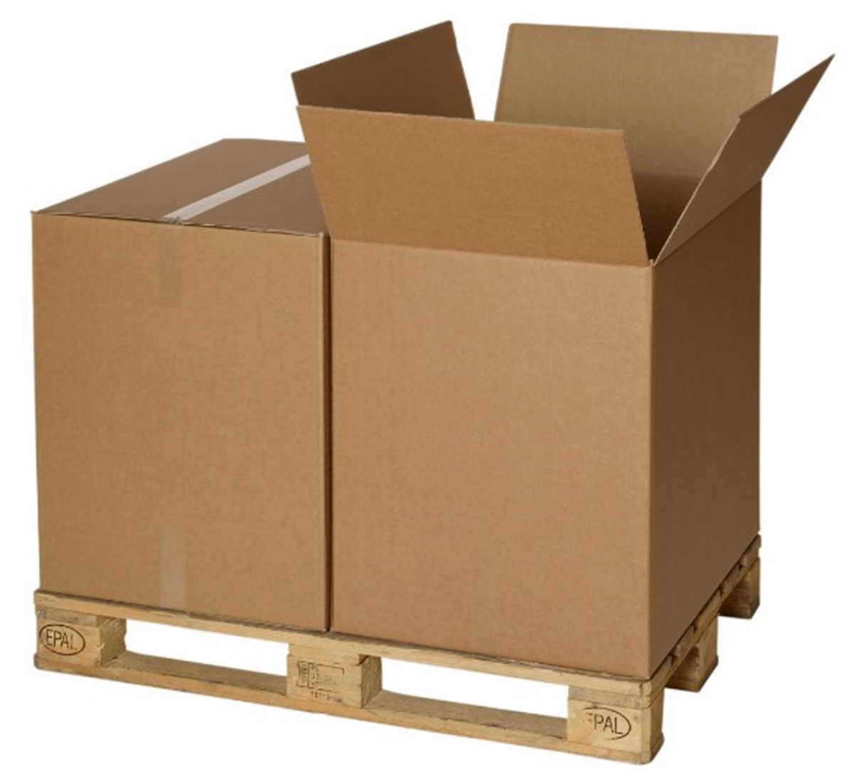 Ett storemballage av brun well anpassad till halvpall, 800x1200 mm. Slitslåda. Kvalitet 210BC.