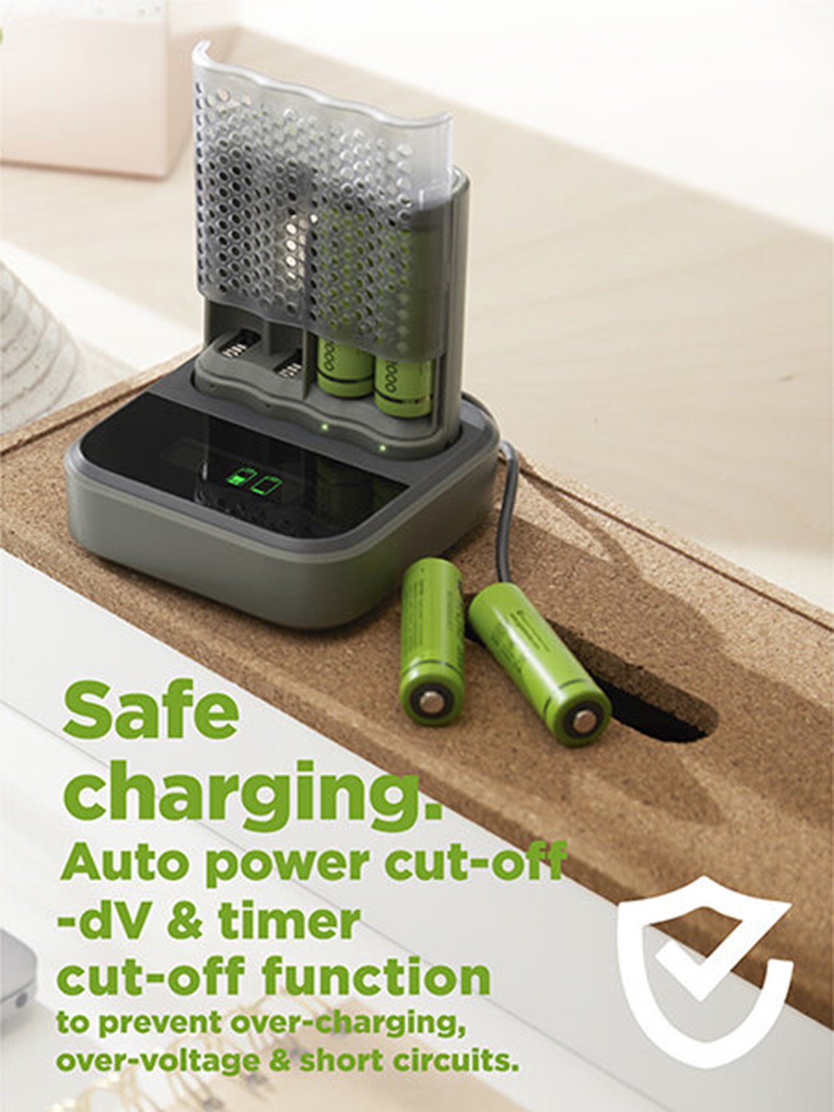 De tvåfärgade LED-indikatorerna visar tydligt laddstatus samt varnar om engångs- eller defekta batterier har satts in i laddaren. En ytterligare säkerhetsfunktion är -dV-övervakning av fulladdning, som automatiskt stänger av laddningen när batterierna är fulladdade. Detta förhindrar överladdning, överström och kortslutning samt bidrar till längre batterilivslängd.