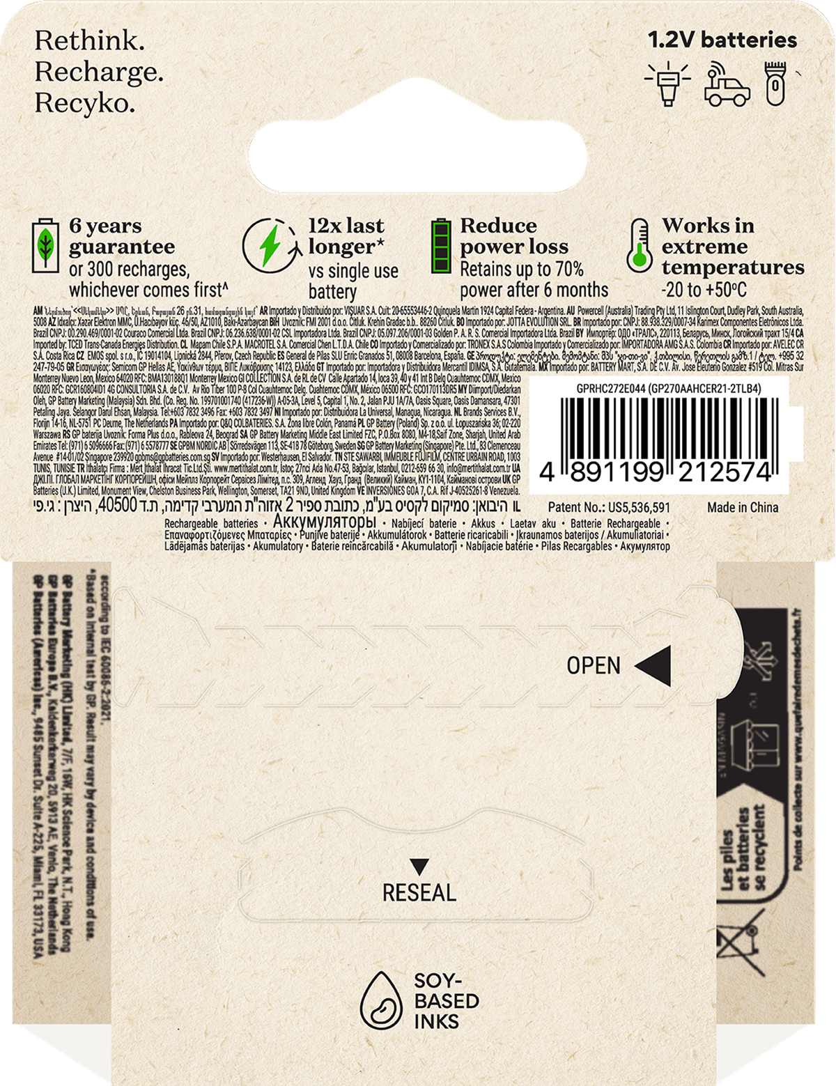 Recyko AA 2600mAh batteri är ett kraftfullt laddningsbart NiMH batteri som är utvecklat för ditt vardagliga användande. Batterierna är laddade vid köp och redo att användas direkt ur förpackningen. Till skillnad från engångsbatterier så kan Recyko användas vid låga temperaturer, ända ned till - 20°C. Batteriet är dessutom skapat med mer än 10% återvunna material och över 90% av batteriet, inklusive förpackning är återvinningsbart.