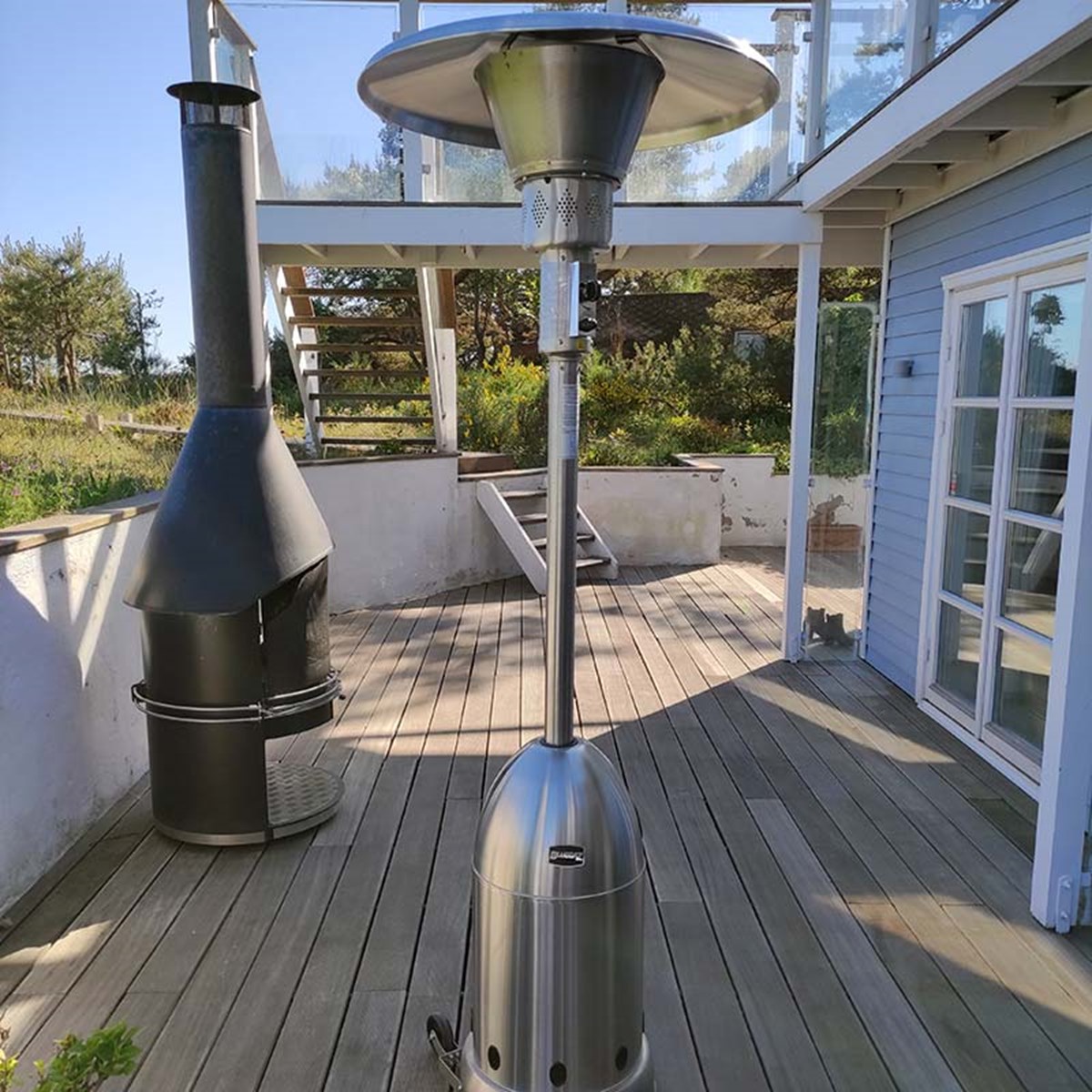 Trotsa vädret och njut av uteplatsen året om med hjälp av Bluegaz Bullet Terrassvärmare för gasol. Bluegaz Bullet är en riktig kvalitetsvärmare i rostfritt stål med stilren design och unik konstruktion. Till skillnad från andra terrassvärmare har Bluegaz Bullet en konisk brännare vilket gör att värmen utstrålas från en optimal vinkel. Den högeffektiva brännaren ger en bra effekt på 5-13 kW och har steglös reglering så att du enkelt kan hitta det perfekta värme läget för varje situation. Med denna snygga gasolvärmare kan du alltid bjuda in till härliga utomhuskvällar.