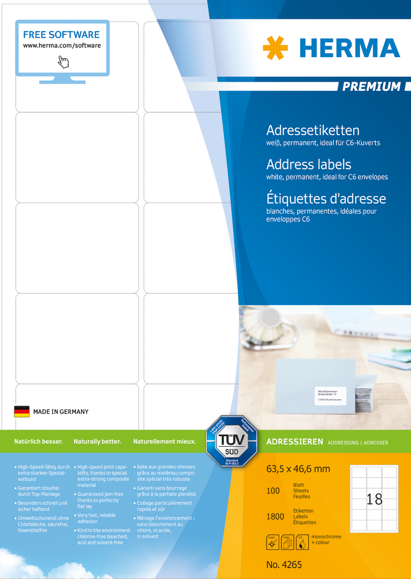 Etiketter Herma Premium 63,5x46,6 mm 1800/fp