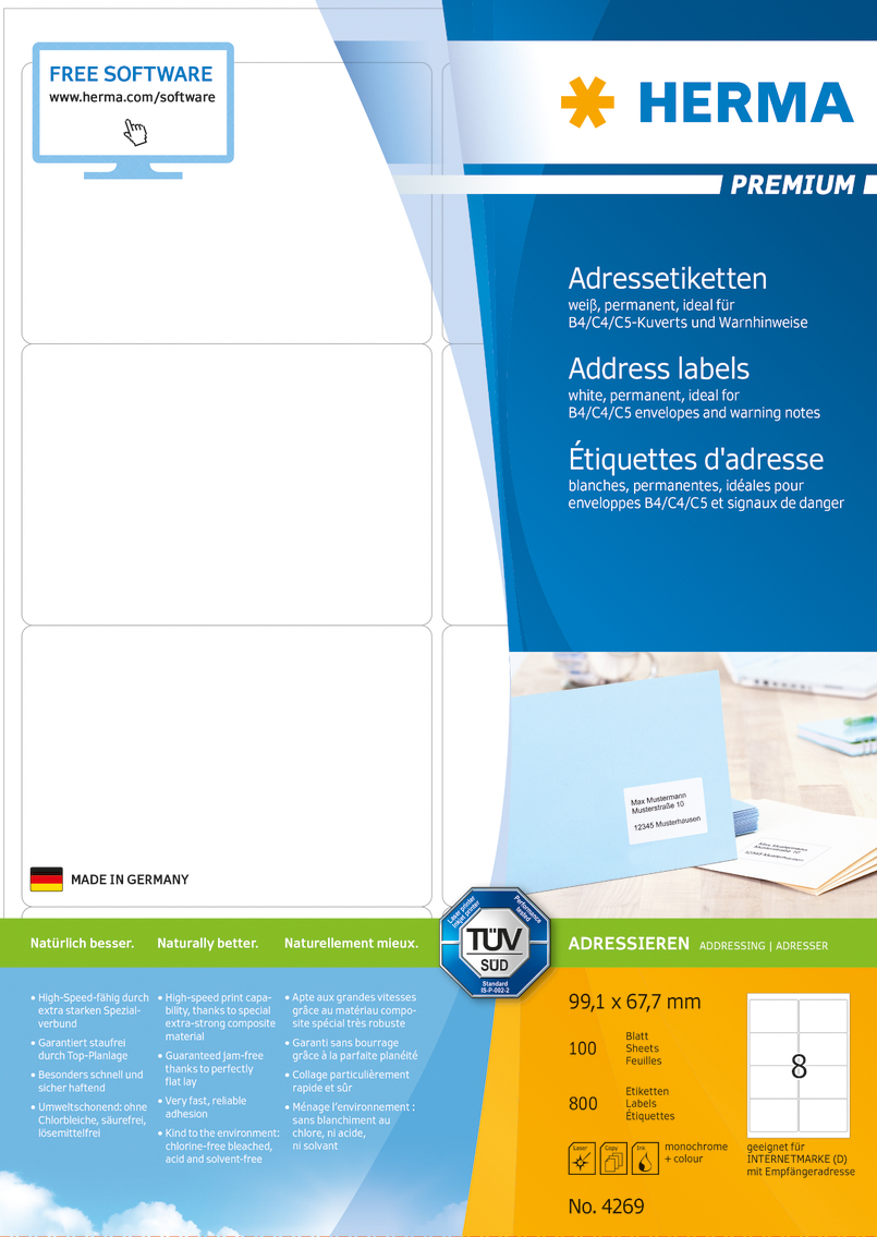 Etiketter Herma Premium 99,1x67,7 mm 800/fp
