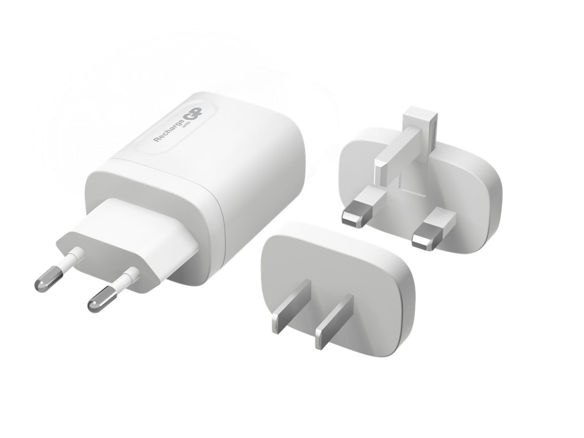 GP 20 W PD-laddare laddar upp till tre gånger snabbare än standardladdare och kan ladda telefonen till 50 % på endast 30 minuter. De dubbla USB-C- och USB-A-portarna gör det möjligt att ladda två enheter samtidigt. Laddaren kommer i ultralätt utförande och med reseadaptrar för smidig laddning överallt. De många säkerhetsfunktionerna förhindrar överspänning, överström och kortslutning.