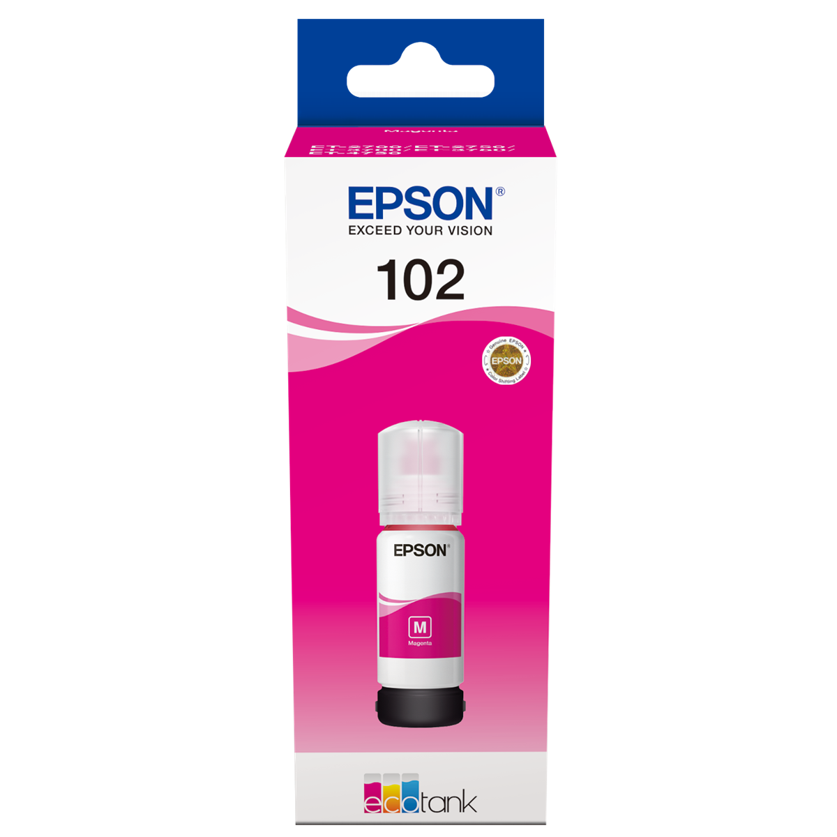 Upptäck vår bläckuppsättning 102 – den är problemfri, till en extremt låg kostnad, och kladdar inte. Detta färgämnesbaserade bläck i fyra färger innehåller även pigment och är perfekt för att framställa dokument med hög kvalitet. Med en enda uppsättning bläck kan du skapa tusentals sidor utan att behöva byta en enda patron. Det är prisvärt också – när du köper en EcoTank-skrivare kan du spara i genomsnitt upp till 90 % av utskriftskostnaderna. Innehåll 70 ml.