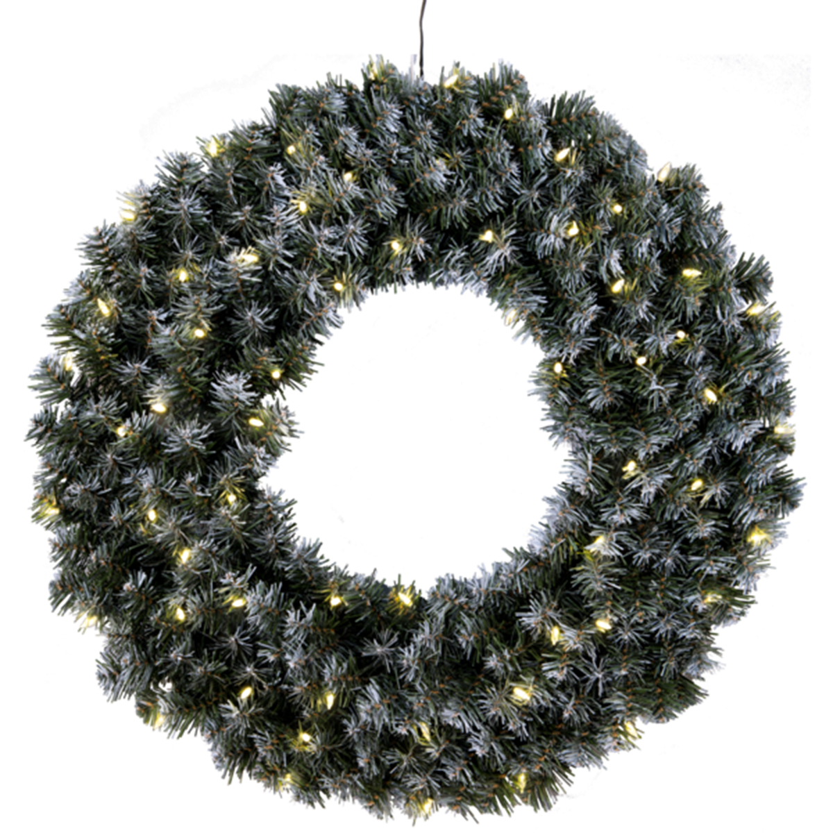 Grön krans med snö och 60 varmvita LED-lampor. Kransen ger ett fint och inbjudande sken i mörkret. Dekorera med kransen inomhus eller utomhus exempelvis mot en vägg eller på en dörr. Mått: 70x70 cm.