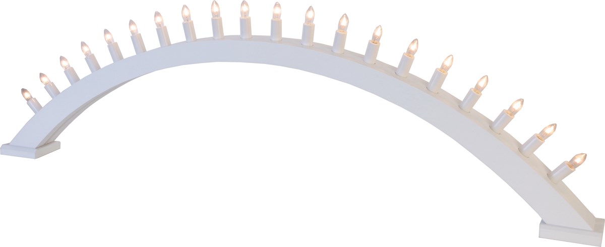 Vit träljusstake med 20 ljuskällor. Ljusstaken är formad som en båge och ger ett elegant intryck. En underbar adventsljusstake som sprider härlig julstämning i hemmet. BxH: 105x31 cm.
