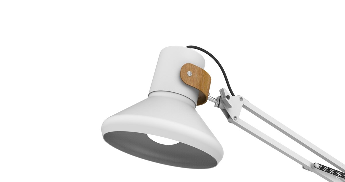 En modern version av den traditionella arkitektlampan. Producerad av återvinningsbar aluminium och bambu vilket bidrar till bevarande av naturresurser. Dubbelledad arm som möjliggör rörelser i alla riktningar och ljuset är högkvalitativt och flimmerfritt. Ljuskälla i LED med en styrka på 12,6 watt. Brinntid 30 000 timmar. Bordsfot och klämma. 2 års garanti.