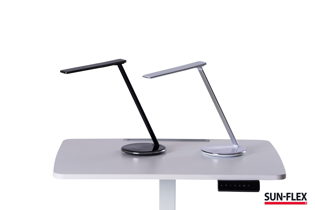 Stilren bordsarmatur med inbyggd QI-laddare i basen som möjliggör enkel och smart laddning av telefoner som stödjer trådlös laddning. Perfekt för kontorsarbetsplatsen eller hemmakontoret.