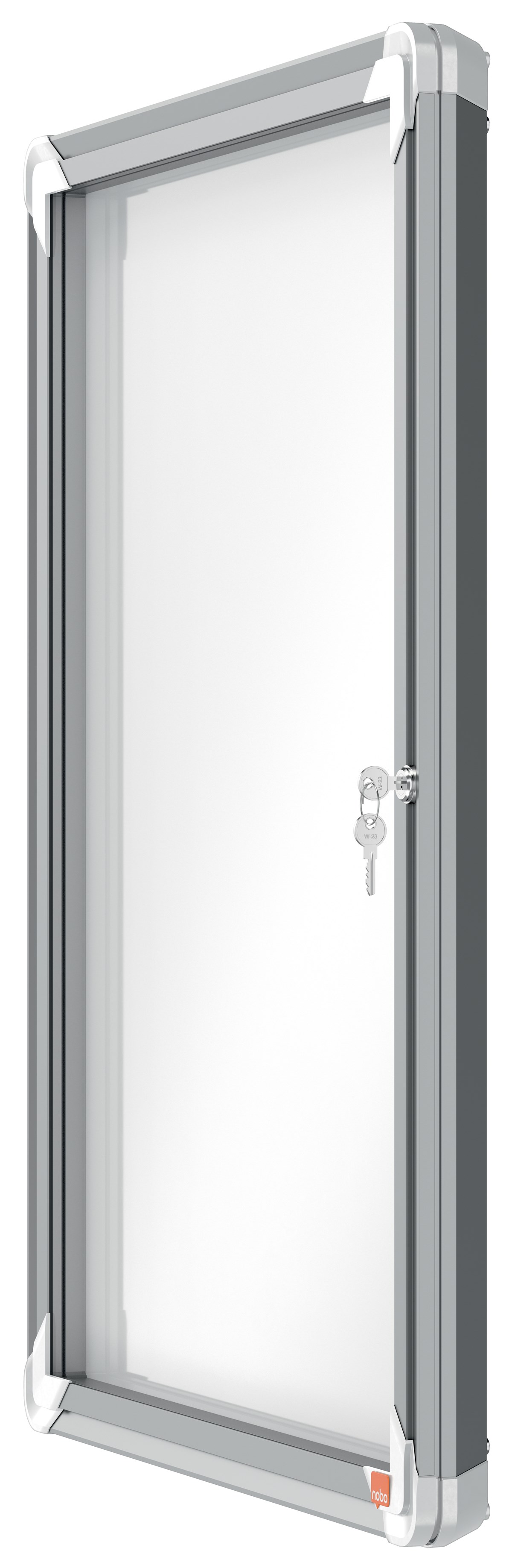 Låsbar magnetisk anslagstavla med säkerhetsglasdörr på gångjärn samt sidolås. Modern snygg ramkant av aluminium och hörnfästen för genomgående montering. Utmärkt magnetisk anslagstavla för att säkert visa dina meddelanden. Mått: 530 x 690 x 45 mm. 10 års garanti.