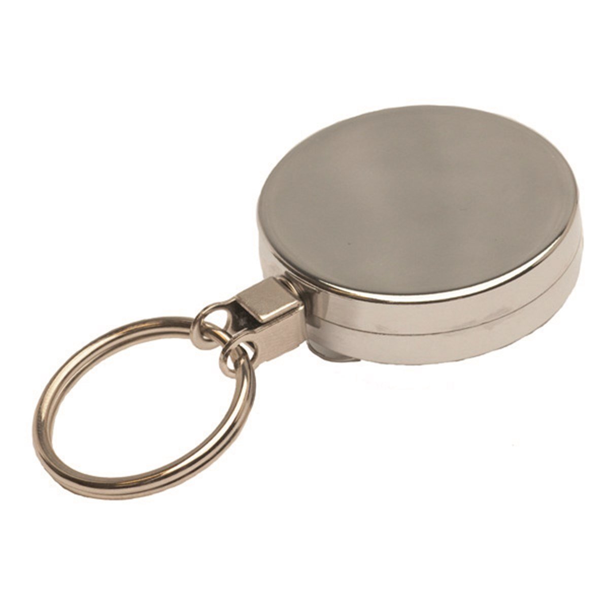 För kort och nycklar av olika format och tjocklekar. Ett eller flera kort och nycklar kan bäras i den förmonterade nyckelringen. Krokodilklämma kan användas för kort utan hål. Mycket enkel att hantera med en hand. Kraftigt bältesclip i metall på baksidan är standard. Trådlängd 85 cm.