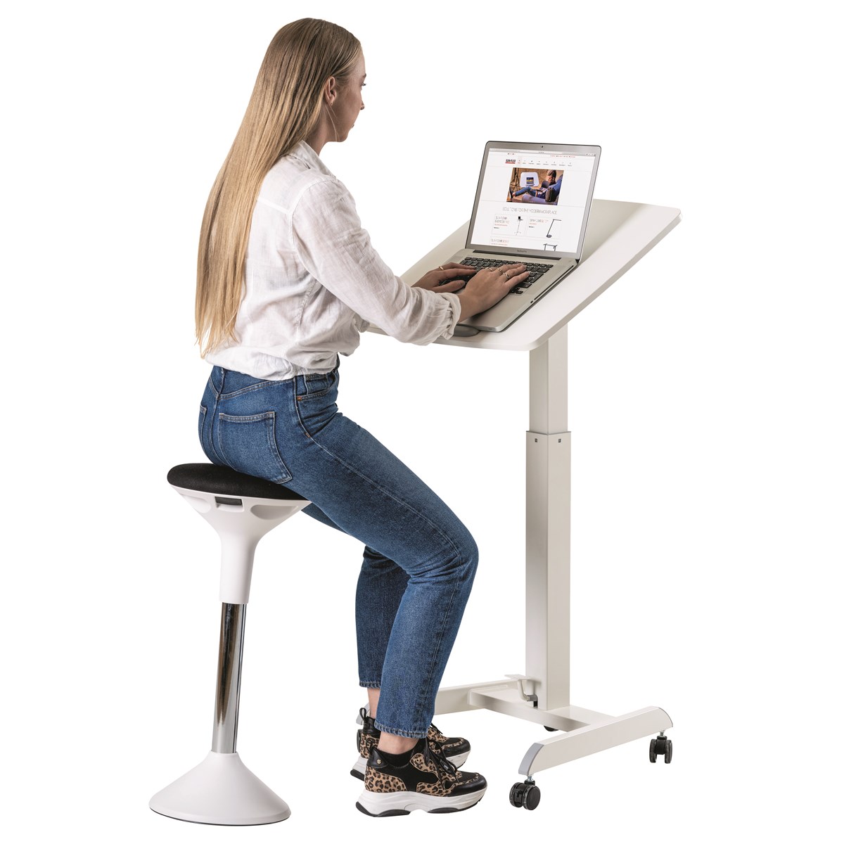 Ett bord som passar utmärkt för kontoret, hemmakontoret, skolan och aktivitetsbaserade arbetsplatser. Materialen är noga utvalda för att ge gedigen stabilitet och funktion. Manuellt höj- och sänkbart (78–108 cm) med gasfjäder, alltså helt utan vev eller elsladd. Bordsskiva: 60 x 52 cm. Fyra hjul för smidig förflyttning, två är individuellt låsbara genom en lätt knapptryckning. Den unika konstruktionen på bordsskivan gör det möjligt att vinkla skivan 0-30°. Använd bordet som ritbord, avlastningsbord, bokställ, notställ eller som podium vid föreläsningar i det moderna klassrummet och som portabel kateder. Bordet kan vikas ihop för enkel förvaring. Frakt tillkommer, kontakta oss för prisuppgift.