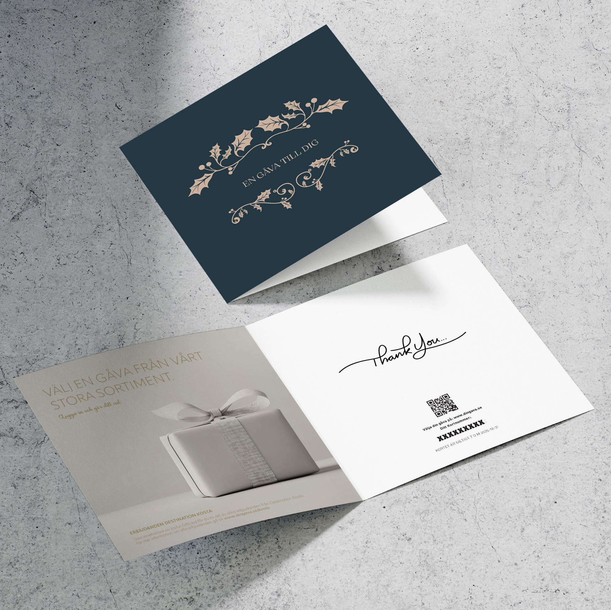 Ett extra flexibelt värdekort. Här laddas kortet med ett belopp och mottagaren har tillgång till hela vårt stora sortiment. Man kan välja att bara handla för beloppet som finns på kortet eller själv lägga till pengar för att uppgradera gåvan eller välja fler produkter. Vi samarbetar med Klarna, så man kan enkelt betala med faktura eller direktbetalning. Kortet kan användas vid flera beställningar och slutar gälla först när det laddade beloppet är slut.