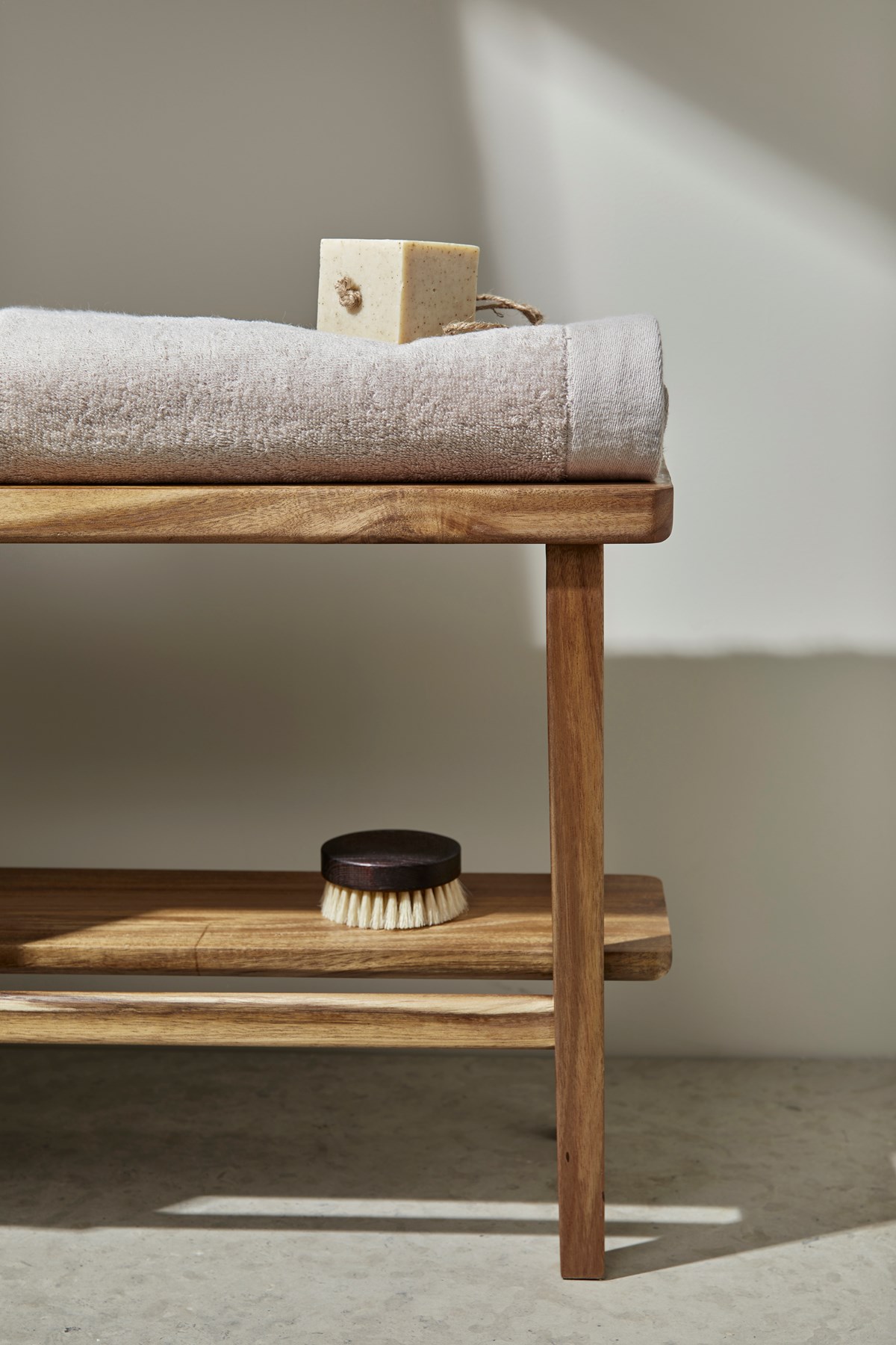 Mjuk och slitstark handduk i jordnära färger. Tillverkade i 68 % bomull och 32 % lyocell, en naturfiber från certifierad skog. Materialmixen ger en sval känsla, hög uppsugningsförmåga och lång hållbarhet.