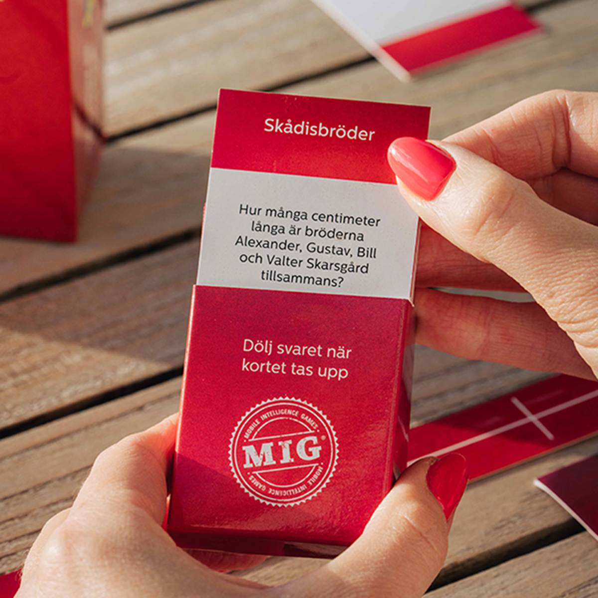 Tillverkad i Sverige av Playmig. Innehåll:, 318 st frågekort i olika ämnen, 6 st 0-1000 tallinje, 4 st korthållare, 12 st utmaningskort, 6 st startkort, regler. 2-6 spelare eller spela i lag. Speltid från 30 minuter.