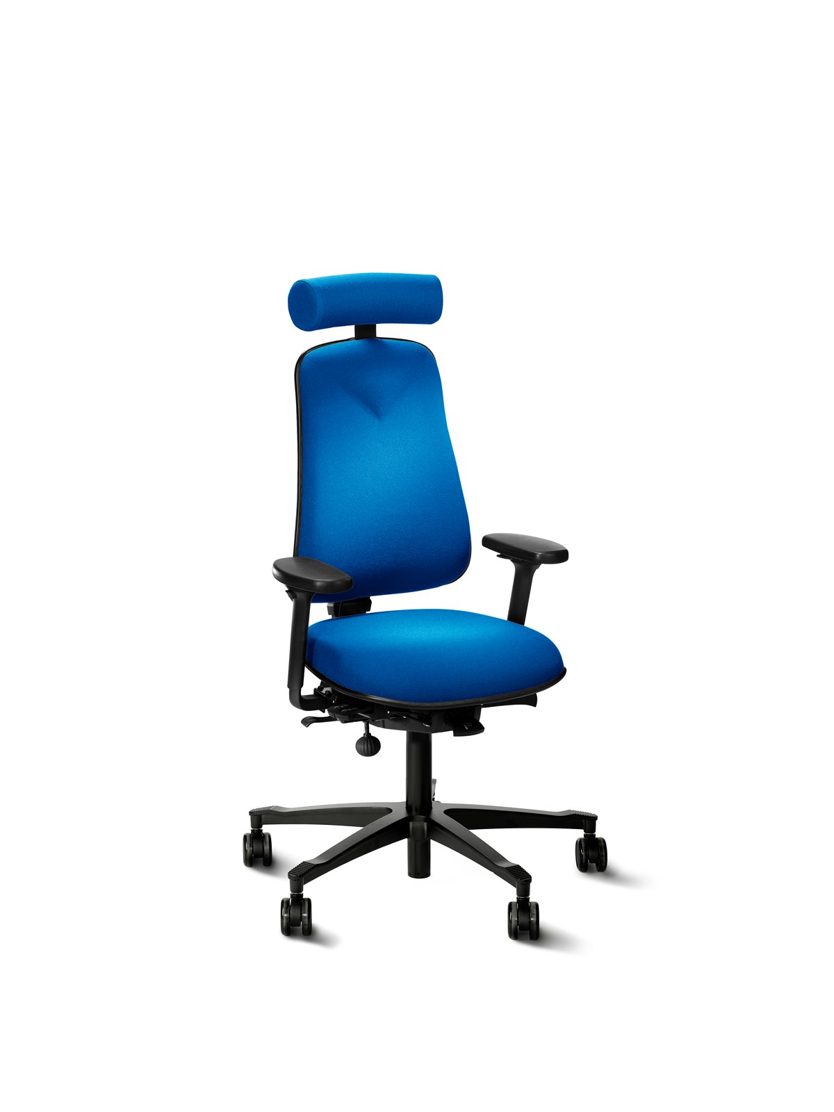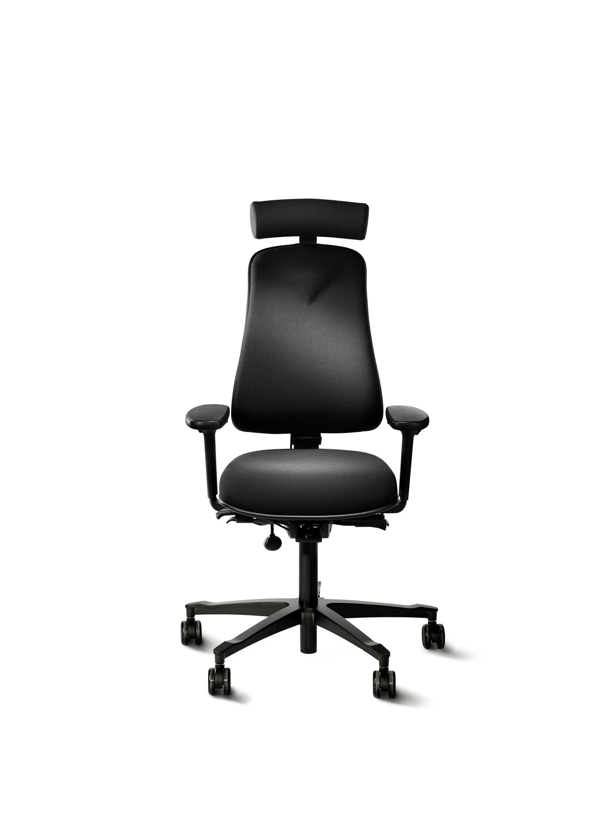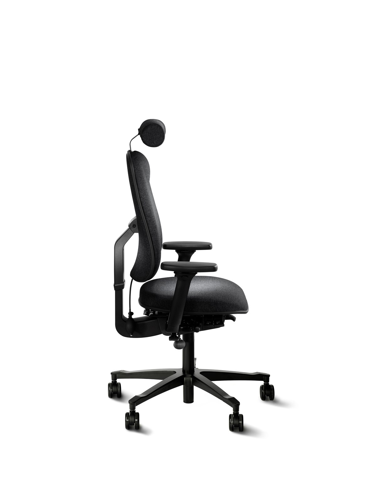 Höganäs mest sålda stol. Bra svankstöd tack vare den unika, flexibla och justerbara ryggen. Justerbar sitthöjd och sitsdjup, vinklingsbar och låsbar sits. Balanserad och låsbar gunga. Hjul för hårda golv. Rygg: 41 x 54 cm. Sits b x d: 43 x 47 cm. Sitthöjd: 40–57 cm. Tyg: Fame.