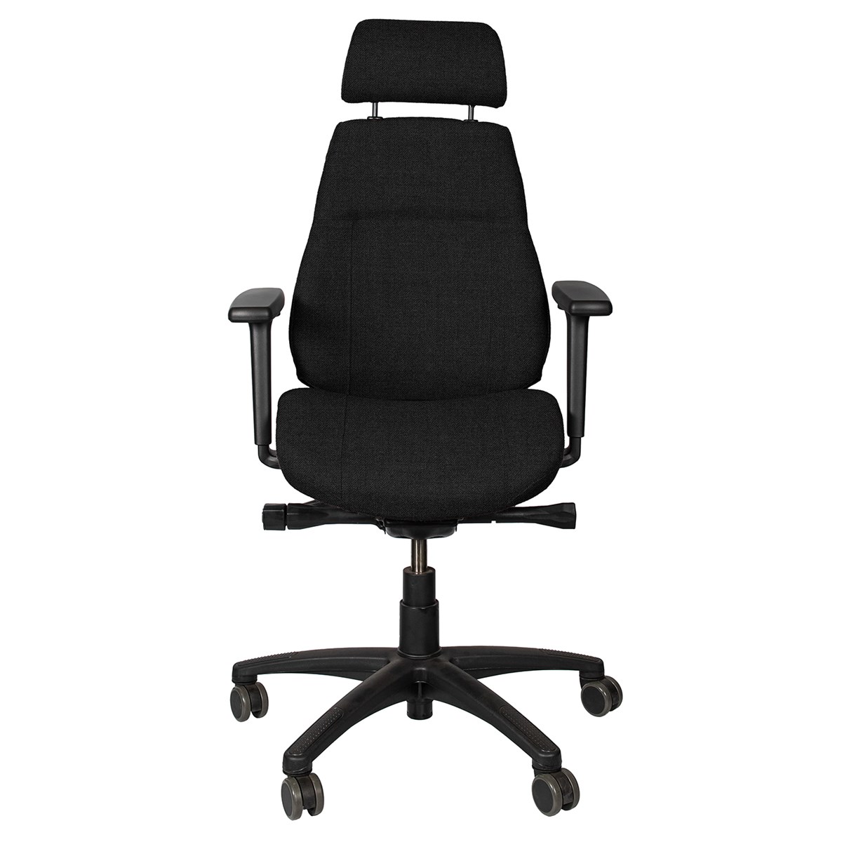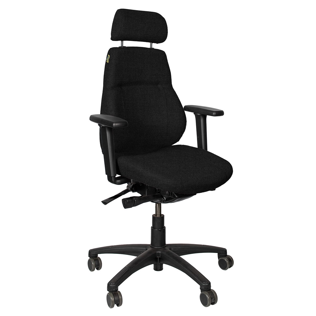 Justerbar sittdyna, höjning och vinkling av ryggen ger stora inställningsmöjligheter för användaren. Levereras med armstöd som är justerbara i höjd- och sidled. Nackstödet är justerbart i höjdled samt vinklingsbart. Utrustad med hjul för hårda golv. Levereras med ett slitstarkt, svart ulltyg (Gaja) som standard. Kan även fås i en kombination av ull/polyester. 5 års garanti.