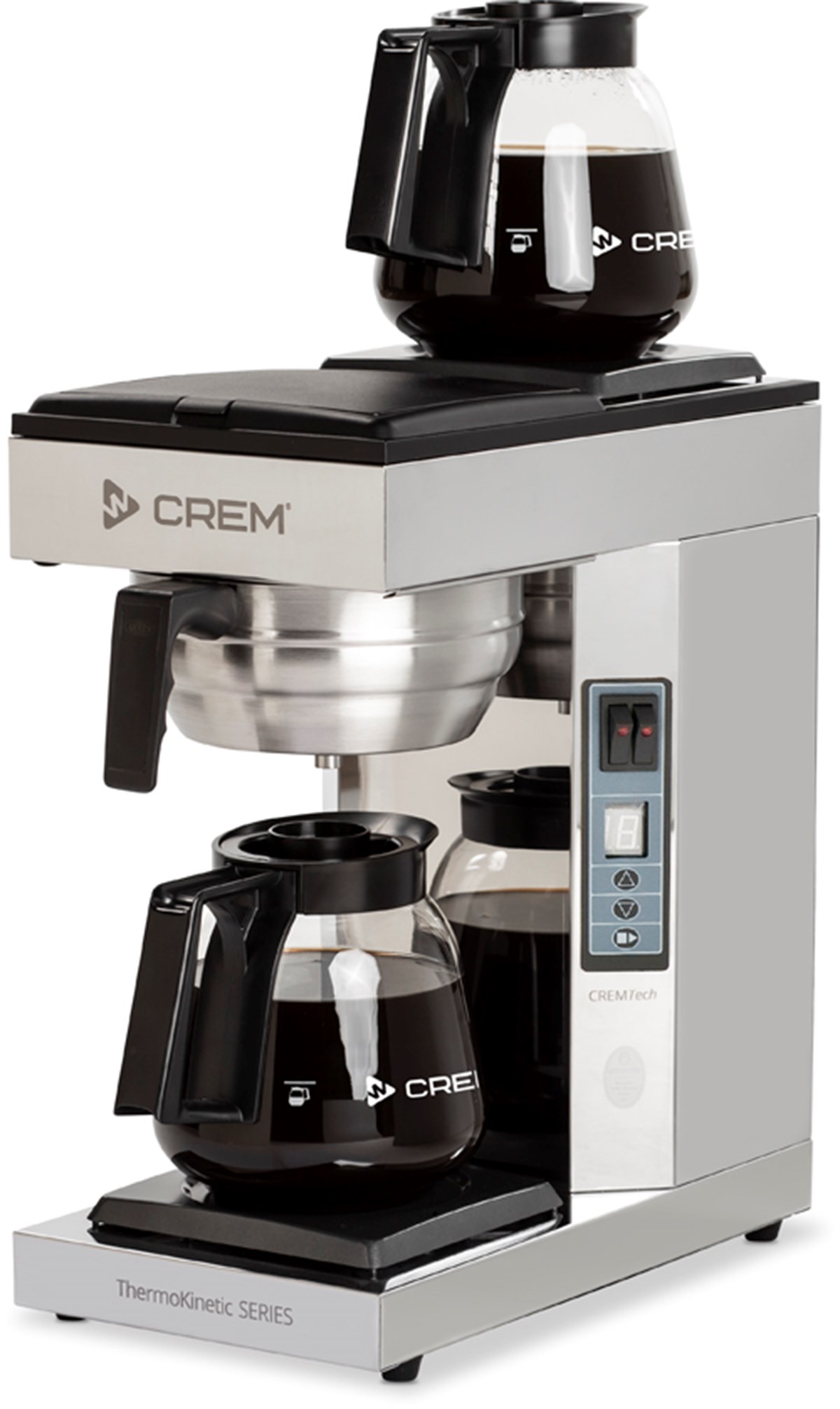 Uppskattad trotjänare med 2 värmeplattor. Bryggmängden 4-12 koppar justeras lätt. Automatisk vattenpåfyllning. Digital display och signal vid färdig bryggning. 15 liters kapacitet per timme. 2 serveringskannor på 1,8 liter vardera medföljer. Effekt: 1-fas: 2400 W. Filter: 110 mm.
