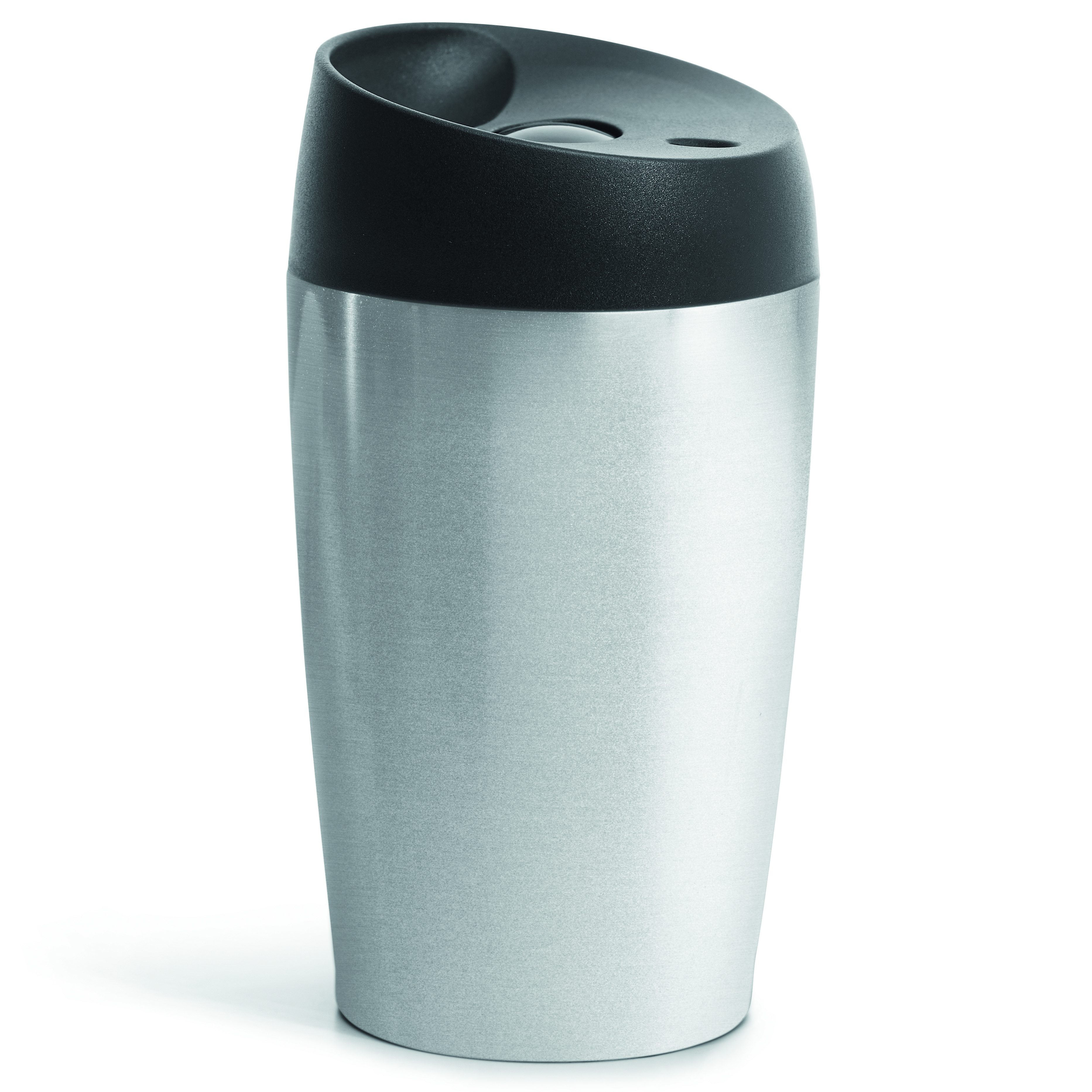 Sagaforms populära bilmugg i en praktisk storlek som passar att ställas direkt i de flesta kaffemaskiner. Rymmer 24 cl dryck. Den smarta låsfunktionen gör muggen både läckagefri och lätt att dricka ur. Bara att trycka på knappen för att öppna/stänga. Muggen har en konstruktion av dubbla väggar i rostfritt stål vilket gör att den håller värmen längre. Kan förses med tryck.