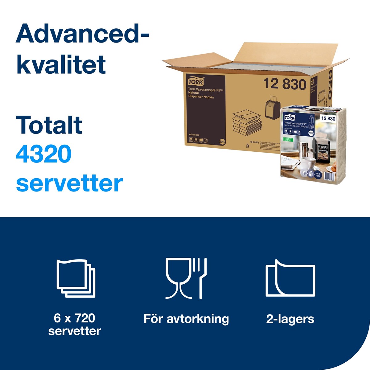 Öka effektiviteten och minska avfallet på din snabbmatsrestaurang med Tork Xpressnap Fit® Natur Dispenserservett. Utmatning av en servett i taget minskar avfall och förbättrar hygienen eftersom besökare endast vidrör servetterna de själva använder. Med den kompakta vikningen tar servettförvaringen upp 35 % mindre utrymme jämfört med Tork Counterfold servetter. Förpackningar med hög kapacitet gör att dispensern måste fyllas på mer sällan. Din personal kommer också att uppskatta Tork Easy Handling® förpackning som gör det enklare att bära, förvara och öppna servetterna. Kvalitet Advanced. 2-lags. Format: 21,3 x 16,5 cm. 720 st/förp., 6 förp./kartong.