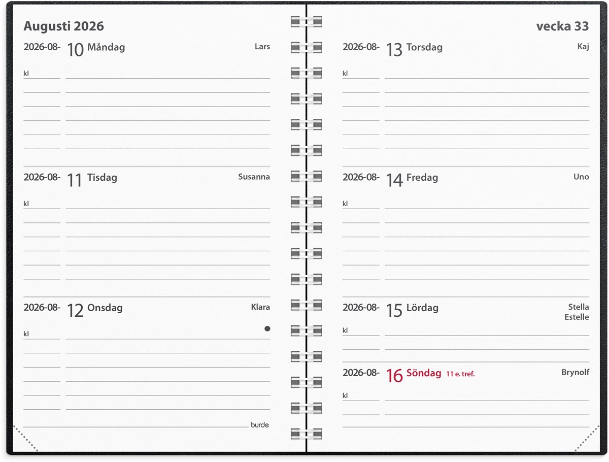 Kalender 2026 Leader svart konstläder spiralbunden