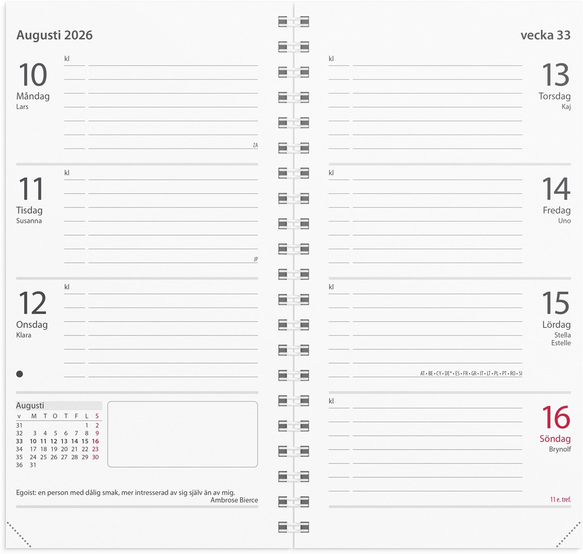 Spiralbunden kalenderrefill till systemkalender med ringmekanism.