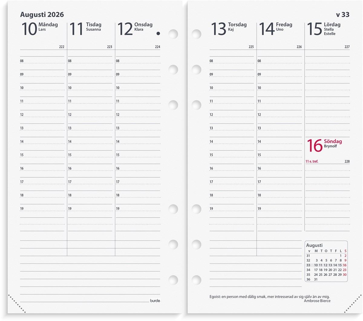 Hålad kalenderrefill till systemkalender med ringmekanism.