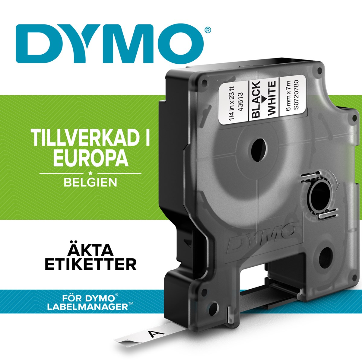 Märktejp Dymo D1 svart/vit 6mmx7m