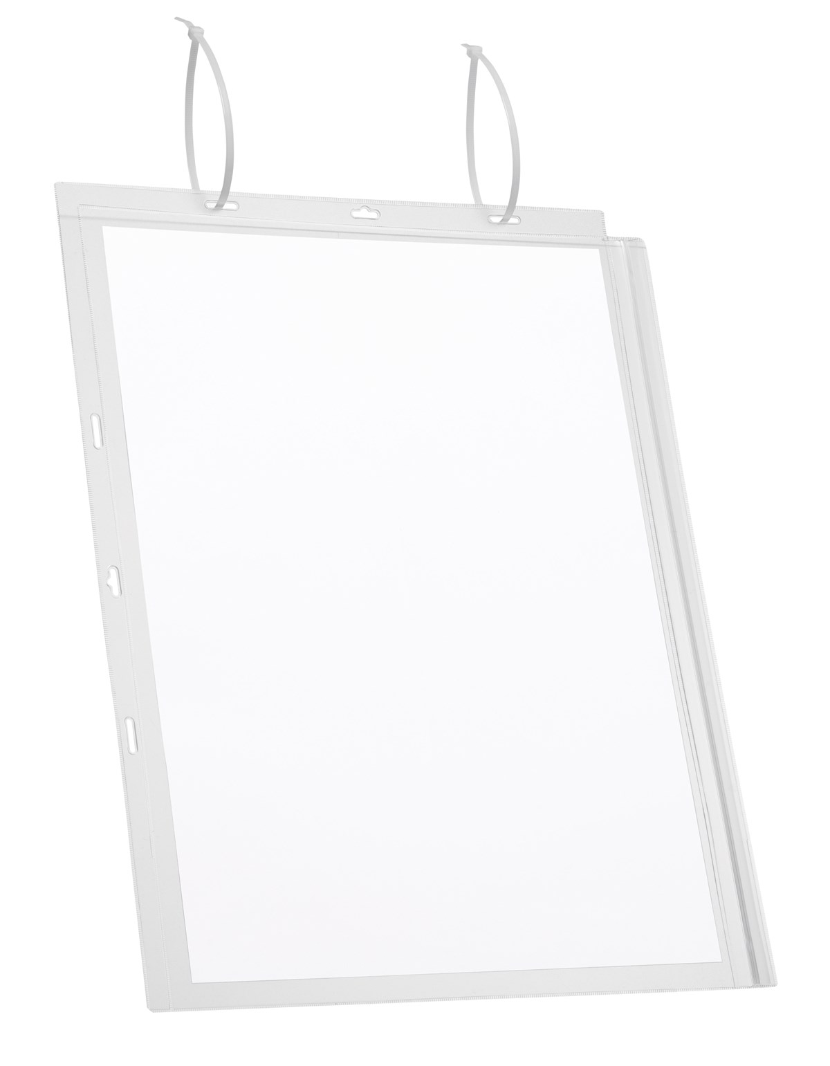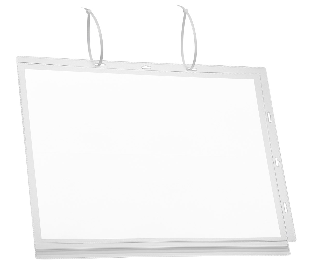 Vattentåliga plastfickor för användning utomhus – enkla att byta inlagan i Väderbeständiga och vattentäta plastfickor avsedda för information som ska visas utomhus där det finns risk för skvättande vatten t.ex. vid handelsträdgårdar, poolområden, grindar och anslagstavlor. Tål sol, hög fuktighet, dagg, regn och skvättande vatten. Plastfickorna är gjorda av transparent, UV-stabil och väderbeständig plast med antireflekterande effekt. Vattentät tryckförsegling skyddar mot väta. Testade enligt IPX5 standard. Tillverkade av återvunnen Blue Angel-certifierad plast. Kan användas i stående eller liggande format. 2 ark, som fickan rymmer, ingår. Fastsättning: de 2 medföljande buntbanden träs genom 2 av fickans hål. 5 st/förp.