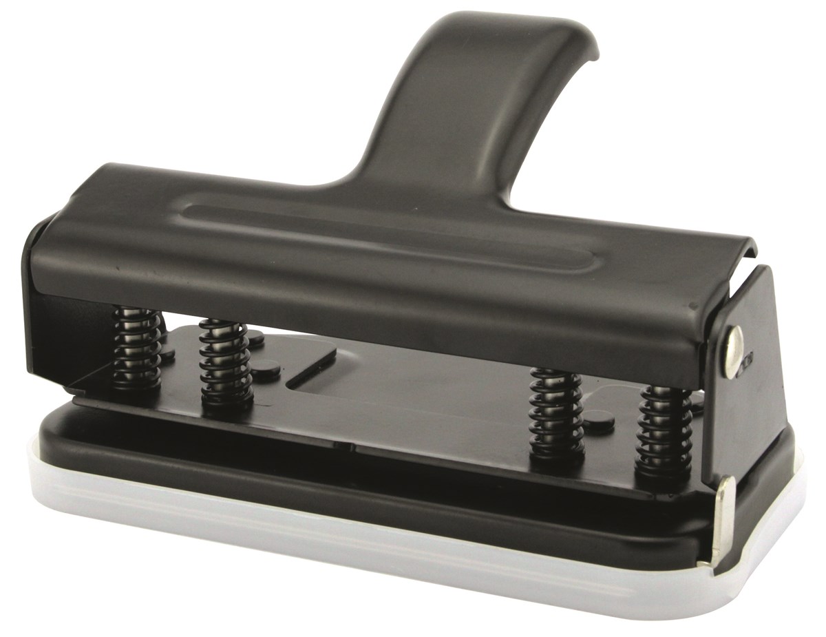 Behändigt och robust hålslag i metall, lätt att förvara i skrivbordslådan. För triohålning. Gaphöjd 1,2 mm, stansar 10 ark. Flat ställskena.