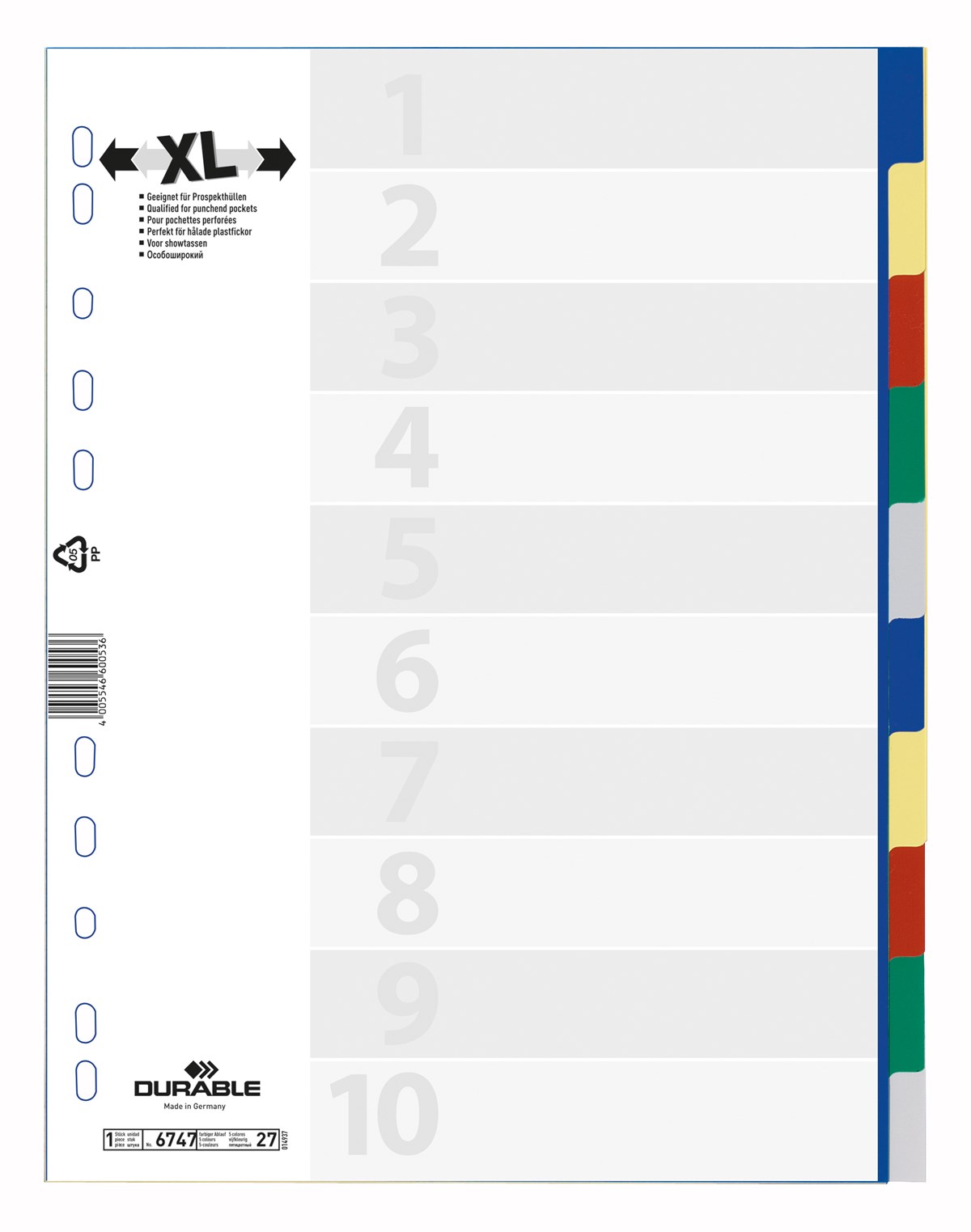 Plastregister Durable XL 1-10