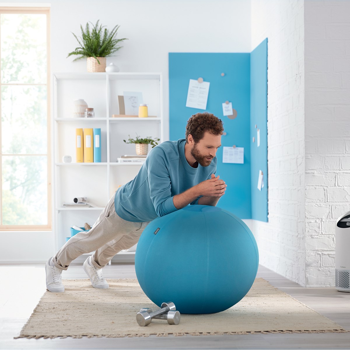 Leitz Ergo Cosy Aktiv Sittboll uppmuntrar rygg- och coremuskelrörelser, förbättrar hållning och lindrar ryggsmärtor. Perfekt att använda som en skrivbordsstol för att hålla dig aktiv medan du arbetar, som en yogaboll eller för att sträcka ryggen, till sjukgymnastik eller annan träning. Snabb och enkel att blåsa upp, den levereras med en handpump, 2 pluggar och har ett hållbart bärhandtag som gör det enkelt att bära från rum till rum. Med en minimalistisk design och matta bidrar sittbollen till en positiv arbetsmiljö, samtidigt som den gynnar fysisk hälsa och välbefinnande. Kombinera med andra Leitz Ergo-produkter för en inbjudande och flexibel arbetsyta som håller dig i rörelse hela dagen. Generös diameter på 65 cm med en robust ftalatfri innerboll, håller för upp till 100 kg.