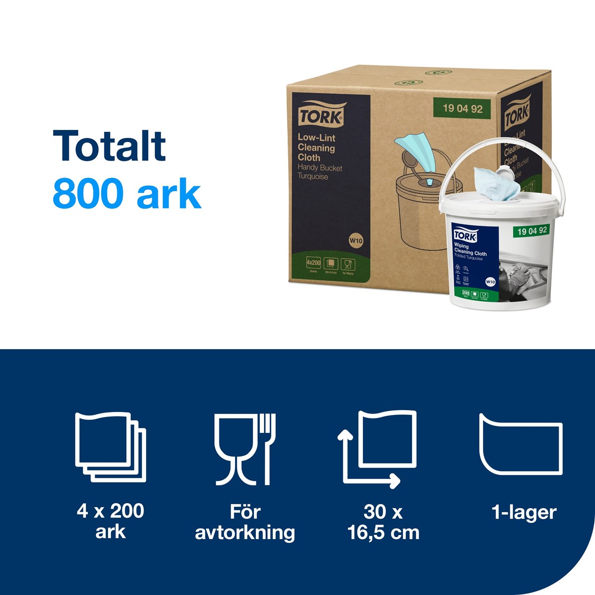 En smidig, tunn och följsam duk i nonwoven för precisionsrengöring. Luddar mycket lite, fungerar bra med lösnings-, rengörings och desinficeringsmedel. Godkänd för livsmedelskontakt. Mått: 60 m x 16,5 cm, perforerade. 200 turkosa dukar/hink.