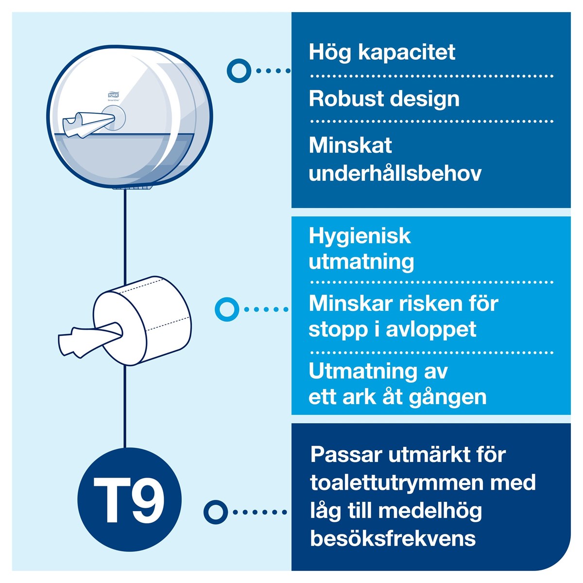 Robust plastdispenser som ger ett ark åt gången vilket minskar förbrukningen med upp till 40 %. Hygienisk - man vidrör bara det ark som man avnänder. Extra hög kapacitet, räcker till många besökare. Mått: (H x B x D) 21,9 x 21,9 x 15,6 cm.
