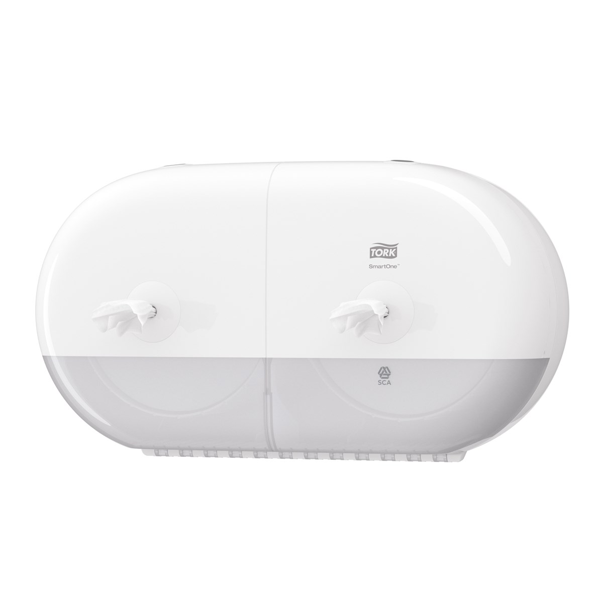 Robust twin-dispenser för välbesökta toalettutrymmen Hög kapacitet som minskar underhållstiden Bidrar till förbättrad hygien då gästerna endast vidrör det papper de använder Utmatning av ett ark i taget minskar förbrukningen Låsfunktion som skyddar rullarna