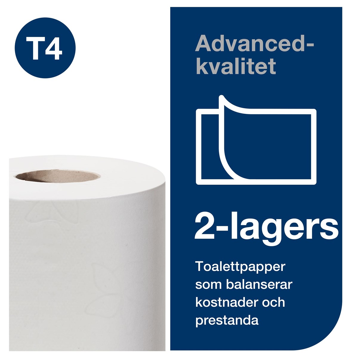 Ge gästerna samma komfort som hemma med extra långt toalettpapper i Advanced-kvalitet från Tork. Det här är ett kostnadseffektivt och funktionellt toalettpapper – perfekt för toalettutrymmen med låg besöksfrekvens. Vitt, 2-lags papper av hög kvalitet (Advanced). 61,6 m/rulle. 24 rullar/förp.